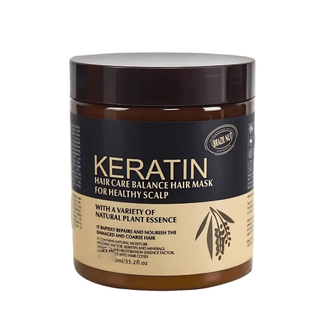 The Brazil Nut Keratin Hair Care Balance Keratin Hair Mask 500ml (Original) is a premium hair treatment designed to restore balance, strength, and shine to all hair types. Enriched with natural Brazil nut extract and keratin protein, it deeply nourishes and repairs damaged hair from root to tip. The Brazil nut oil provides essential vitamins, minerals, and fatty acids that help moisturize the hair, while keratin strengthens and smooths each strand for a silky finish. This creamy mask penetrates deep into the hair shaft, replenishing lost moisture, repairing split ends, and improving elasticity. Its lightweight yet powerful formula tames frizz, enhances manageability, and protects against daily environmental damage. Ideal for dry, chemically treated, or heat-styled hair, it leaves your hair feeling soft, smooth, and full of natural shine. The 500ml jar ensures long-lasting use, making it perfect for regular home treatments or professional salon care. Give your hair the nourishment it deserves with this original, high-quality keratin mask.