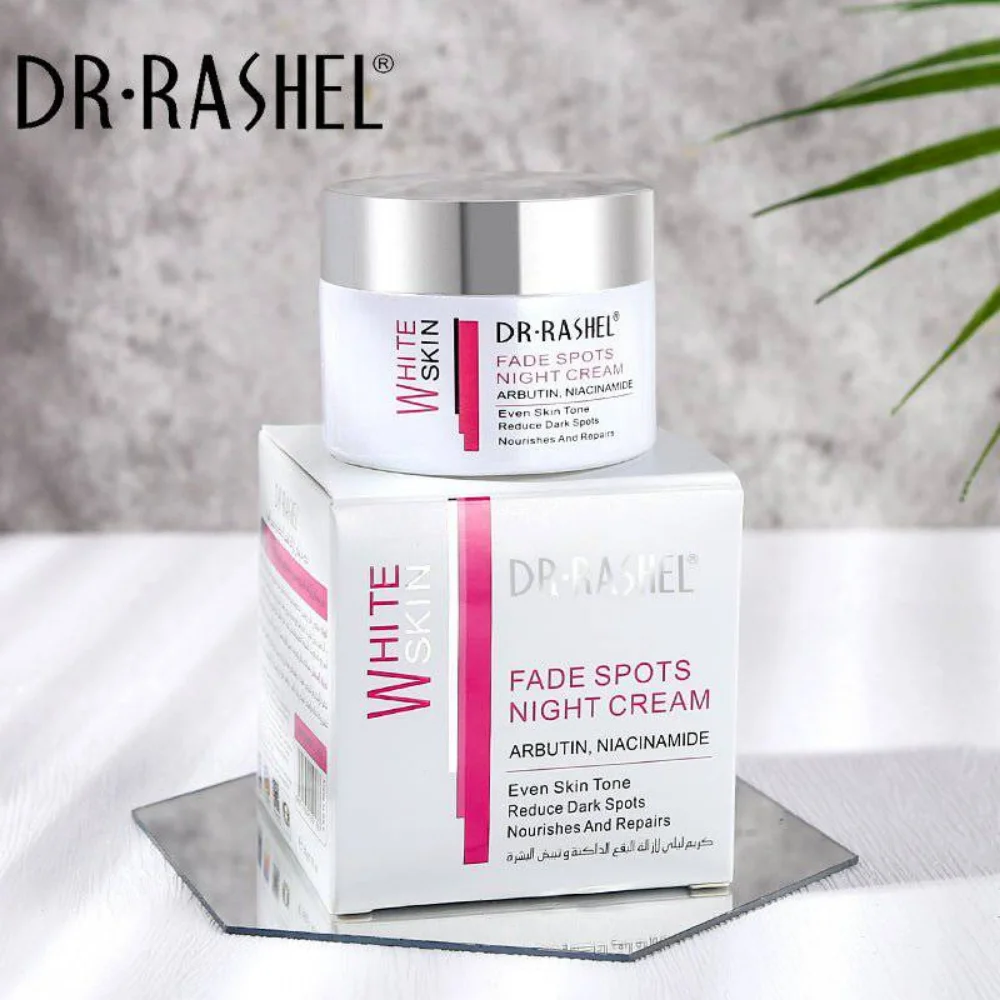 The Dr.Rashel White Skin Fade Spots Night Cream is specially formulated to help reduce dark spots, blemishes, and uneven skin tone while you sleep. Enriched with potent natural extracts and vitamins, this cream works overnight to nourish, rejuvenate, and brighten your skin. Its lightweight, non-greasy texture absorbs quickly, leaving your skin feeling soft, smooth, and hydrated by morning. Regular use helps fade dark spots, acne scars, and pigmentation, revealing a clearer and more radiant complexion.
