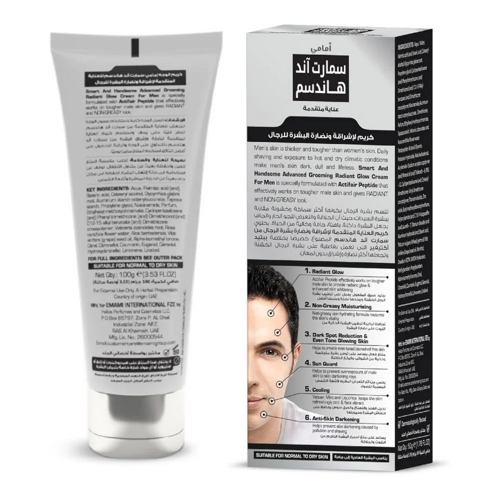 Emami Smart and Handsome Cream for Men 25gm is specially formulated to cater to men’s skin needs, offering brightening, oil control, and protection in one powerful formula. This cream helps reduce dullness, dark spots, and uneven skin tone while keeping the skin fresh and energized throughout the day. Enriched with unique skin brightening agents, Emami Smart and Handsome Cream for Men 25gm works effectively to remove excess oil, reduce stickiness, and provide a natural matte finish. Its lightweight and non-greasy texture makes it comfortable for daily use, even in hot and humid conditions. The cream penetrates deep into the skin, restoring clarity, improving texture, and giving you a more confident, radiant look. With its long-lasting action, it keeps your face fresh, smooth, and shine-free for hours. Perfect for daily grooming, it is designed exclusively for men who want clear, bright, and handsome-looking skin.