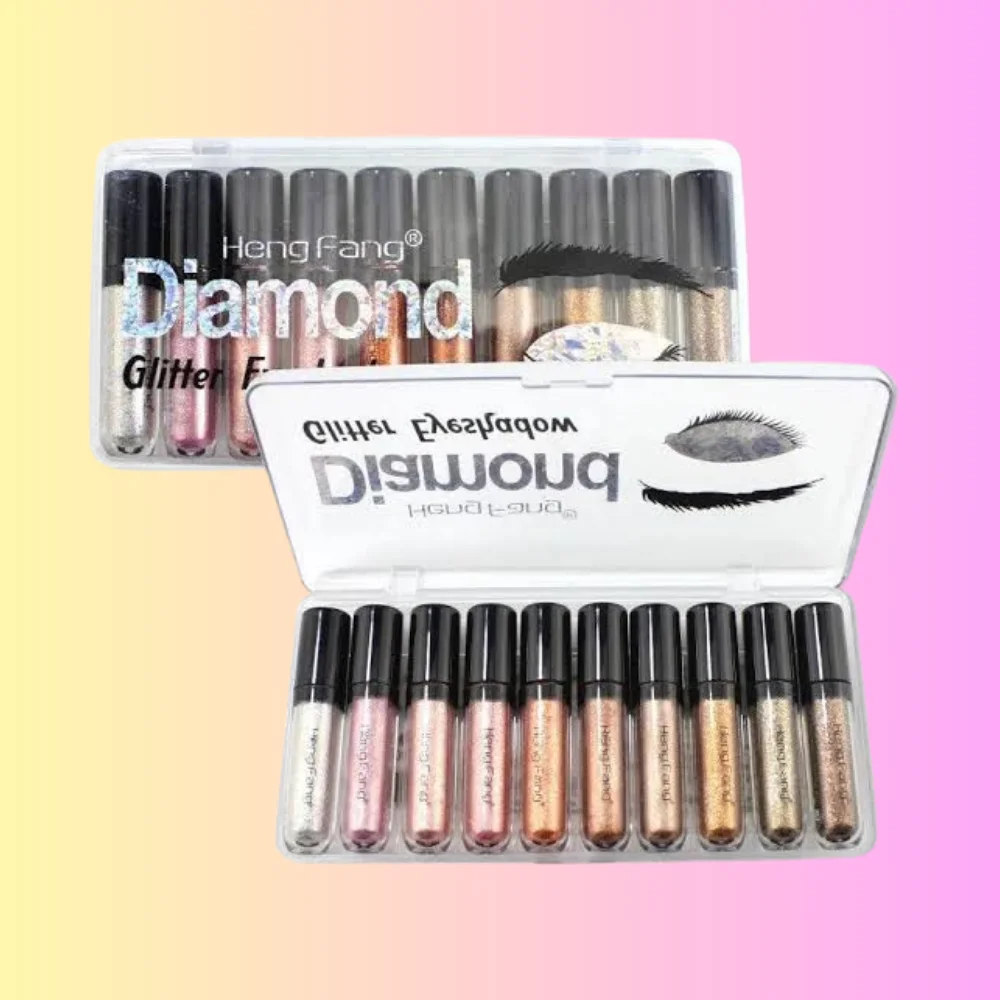 The Heng Fang Shine Diamond Glitter Eyeshadow pack brings a sparkling touch to your eye makeup collection. This set includes 10 dazzling shades that are perfect for creating glamorous, party-ready looks or adding a pop of shimmer to everyday makeup. Each eyeshadow is finely milled, highly pigmented, and easy to apply, allowing smooth blending without fallout. The long-lasting formula ensures your glitter stays vibrant and eye-catching throughout the day or night. Lightweight and comfortable, it adheres well to the eyelids without causing irritation. The versatile shades range from subtle metallics to bold, radiant tones, catering to every occasion and style preference. Ideal for both beginners and professional makeup artists, this glitter eyeshadow pack enhances your creativity and expression. Compact and travel-friendly, it’s easy to carry and perfect for on-the-go touch-ups. Safe for all skin types, these shades provide high-impact shine while maintaining gentle wear. Elevate your eye makeup game with Heng Fang’s sparkling, glamorous diamond glitter eyeshadows.