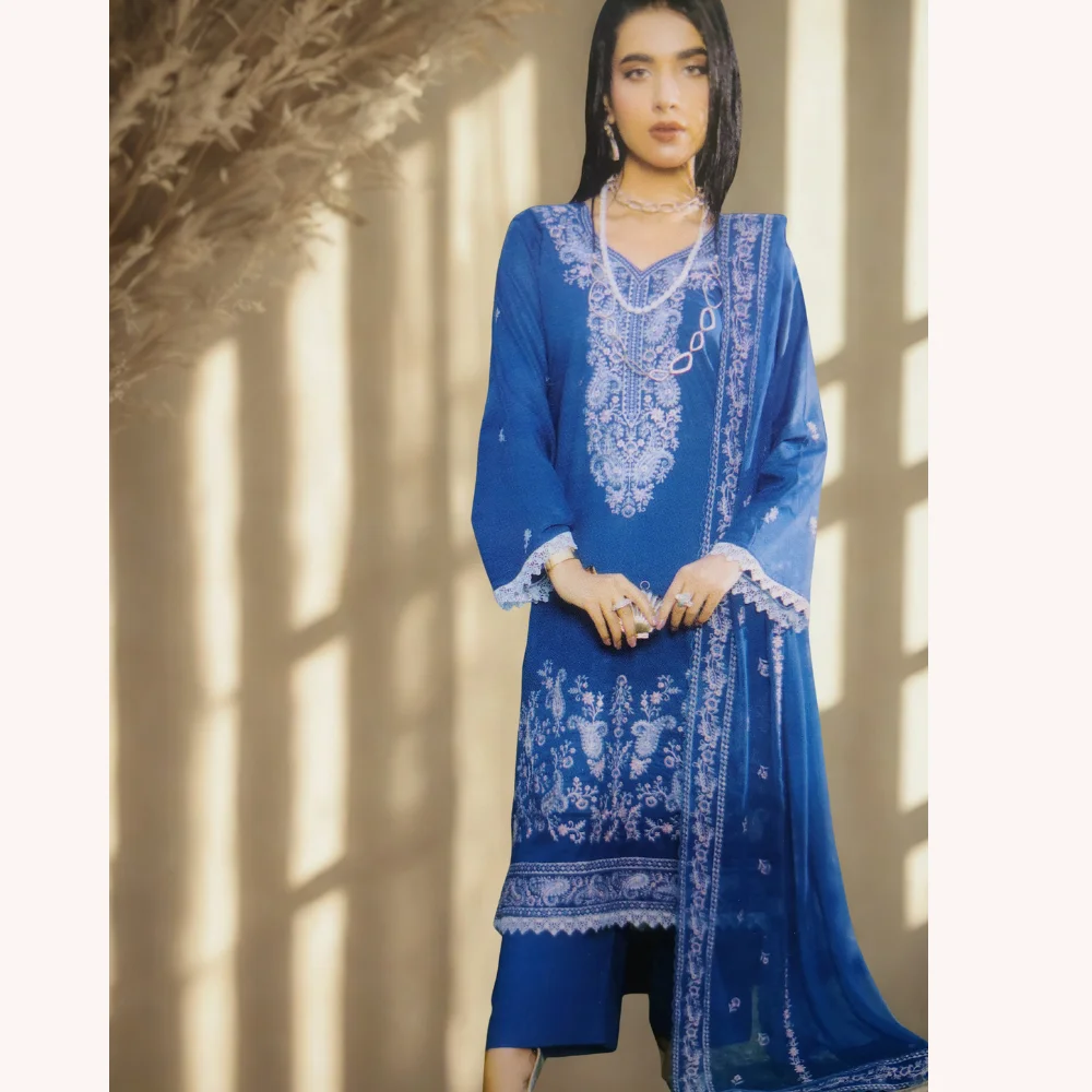 Laiba Luxury Embroidered Lawn 3PC Suit is a premium summer outfit designed for women who appreciate elegance and comfort.