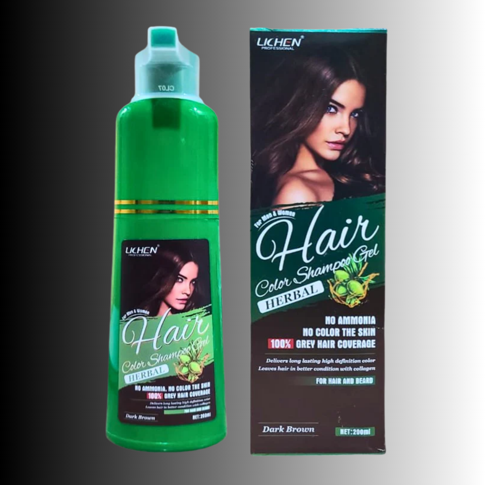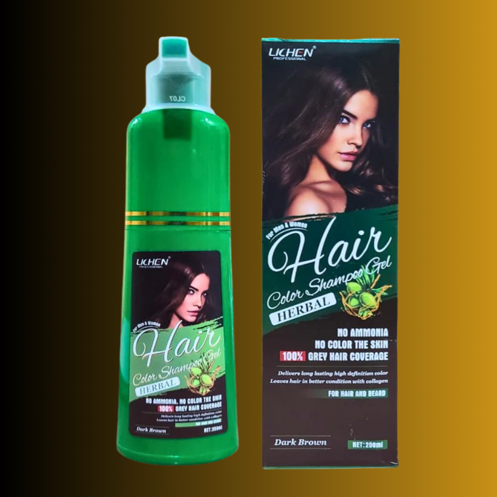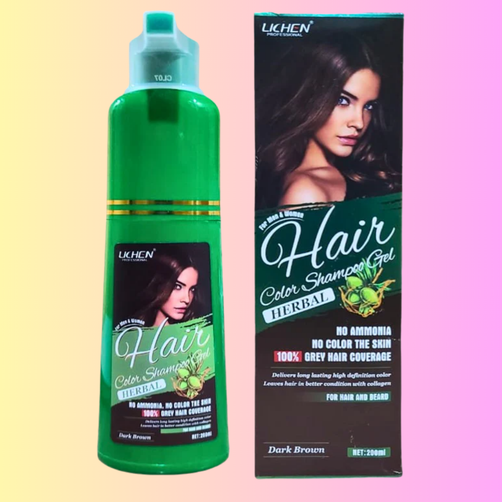 Lichen Hair Color Shampoo Gel in Dark Brown offers an easy and mess-free way to color your hair at home. This dark brown hair color shampoo combines the power of shampoo and color in one step. It takes only 5–10 minutes to cover grey hairs and give you a rich, natural dark brown shade. The formula is gentle and free from ammonia, making it safe for regular use. It nourishes your hair while coloring, leaving it soft, smooth, and shiny. Enriched with herbal ingredients, it reduces dryness and scalp irritation. The gel-based texture spreads evenly for full coverage without dripping. Suitable for all hair types, including damaged and chemically treated hair. It gives long-lasting color that doesn’t fade easily. The dark brown shade adds depth and vibrancy, enhancing your overall look. Easy to apply at home — no brush or bowl required. Just wear gloves, apply, wait, and rinse. The 200ml bottle offers multiple applications, making it economical. Great for both men and women who want quick, salon-like results. Enjoy youthful, shiny hair with every wash. Choose Lichen for safe, rich, and lasting color in minutes.