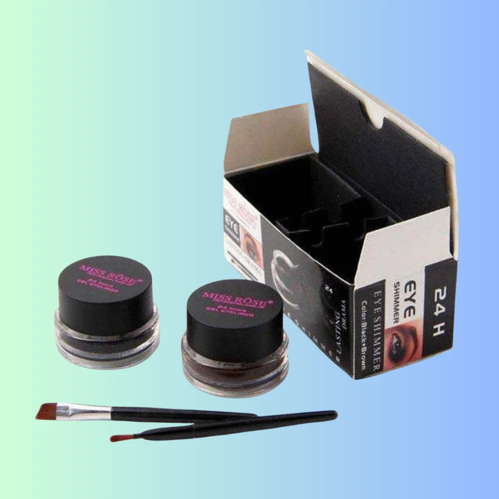 The Miss Rose Eye Shimmer Kajal & Gel Liner in Black & Brown is your ultimate dual-purpose eye makeup essential for creating both bold and subtle looks. Crafted with rich, high-intensity pigments, it delivers deep, captivating color in just one smooth stroke. The creamy formula glides effortlessly over the lash line and waterline, ensuring a flawless finish without pulling or irritation. Designed to be waterproof and smudge-proof, it stays put all day, making it perfect for long events, busy workdays, or special evenings. The shimmering effect adds a glamorous touch, enhancing your eyes with a luminous sparkle. Whether you’re aiming for a dramatic cat-eye, a soft smokey look, or a delicate shimmer, this 2-in-1 product offers endless possibilities. The black shade adds intensity and depth, while the brown shade provides a softer, natural finish. Gentle on sensitive eyes and suitable for all skin tones, it’s perfect for daily wear or festive occasions. Its compact, travel-friendly design allows you to carry it anywhere for quick touch-ups. Achieve professional-looking eye makeup effortlessly with the Miss Rose Eye Shimmer Kajal & Gel Liner—your go-to for elegance, precision, and all-day beauty.